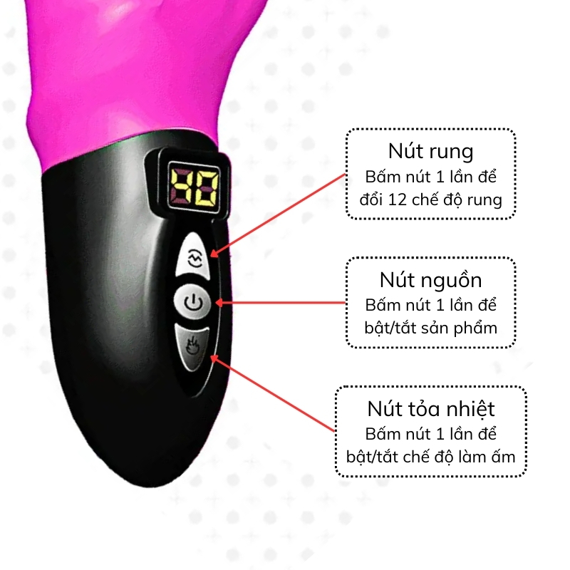 Chức năng: 12 chế độ rung – Tỏa nhiệt nóng ấm lên đến 45 độ C – Có đồng hồ hiển thị nhiệt độ