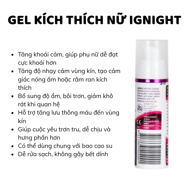 Công dụng: Kích thích tăng khoái cảm cho nữ, tạo cảm giác nóng ấm và tê nhẹ, tăng độ nhạy cảm, bôi trơn và giảm khô rát vùng kín khi quan hệ