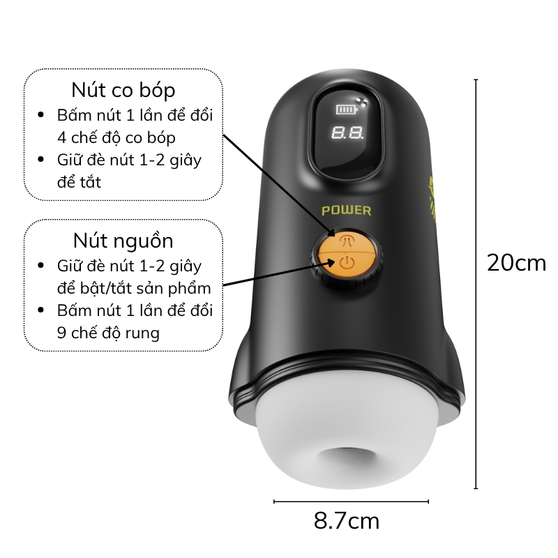 Chế độ: 9 chế độ rung – 4 chế độ co bóp – Điều khiển qua app
